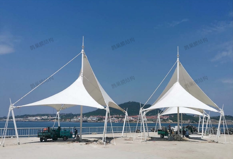 3、外形美观优雅:膜结构以其变化多端的造型,突破纯系发展形式。简练,明快,力与美的连络,给人耳目一新的感受,同时为设计师供应了更大的设想和创作发掘空间。