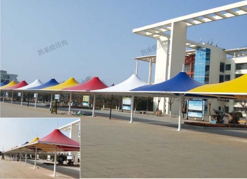 目前,观膜结构停车棚是基本功能遮阳避雨的项目。为了满足自动化的未来发展,是重要的膜结构车棚项目,应采取防火功能,可配置为提供太阳能,自洁功能