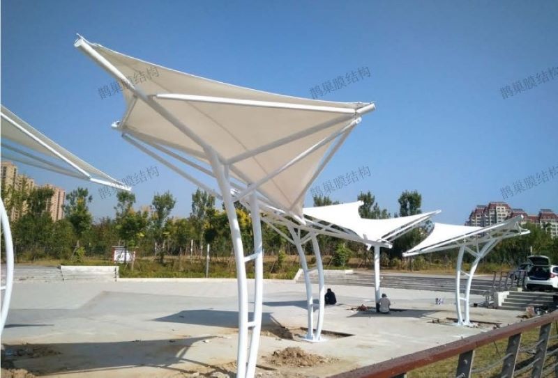 目前,观膜结构停车棚是基本功能遮阳避雨的项目。为了满足自动化的未来发展,是重要的膜结构车棚项目,应采取防火功能,可配置为提供太阳能,自洁功能