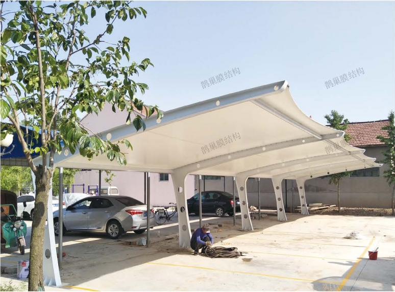 钢膜结构停车棚是一种新型的建筑,一般都是用于体育馆、工厂、学校、社区地方。膜结构停车棚的特点就在于其耐用、耐温、透光性能好等;膜结构停车棚作为时代的产物,在外形上不仅是要美丽大方的,而且这种材料具有实际的功效,透光避雨、防止暴晒汽车变黄的情况。