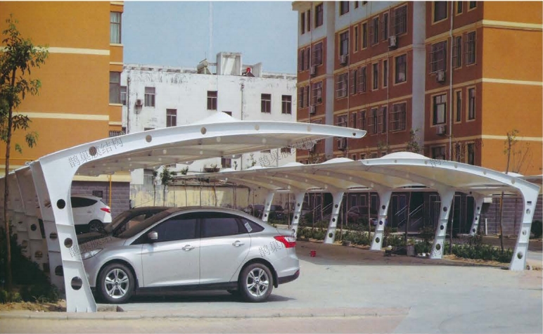 钢膜结构停车棚是一种新型的建筑,一般都是用于体育馆、工厂、学校、社区地方。膜结构停车棚的特点就在于其耐用、耐温、透光性能好等;膜结构停车棚作为时代的产物,在外形上不仅是要美丽大方的,而且这种材料具有实际的功效,透光避雨、防止暴晒汽车变黄的情况。