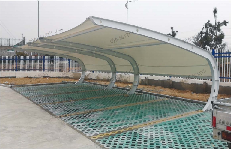 钢膜结构停车棚是一种新型的建筑,一般都是用于体育馆、工厂、学校、社区地方。膜结构停车棚的特点就在于其耐用、耐温、透光性能好等;膜结构停车棚作为时代的产物,在外形上不仅是要美丽大方的,而且这种材料具有实际的功效,透光避雨、防止暴晒汽车变黄的情况。