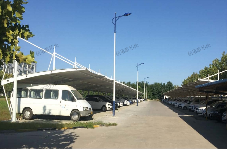 钢膜结构停车棚是一种新型的建筑,一般都是用于体育馆、工厂、学校、社区地方。膜结构停车棚的特点就在于其耐用、耐温、透光性能好等;膜结构停车棚作为时代的产物,在外形上不仅是要美丽大方的,而且这种材料具有实际的功效,透光避雨、防止暴晒汽车变黄的情况。