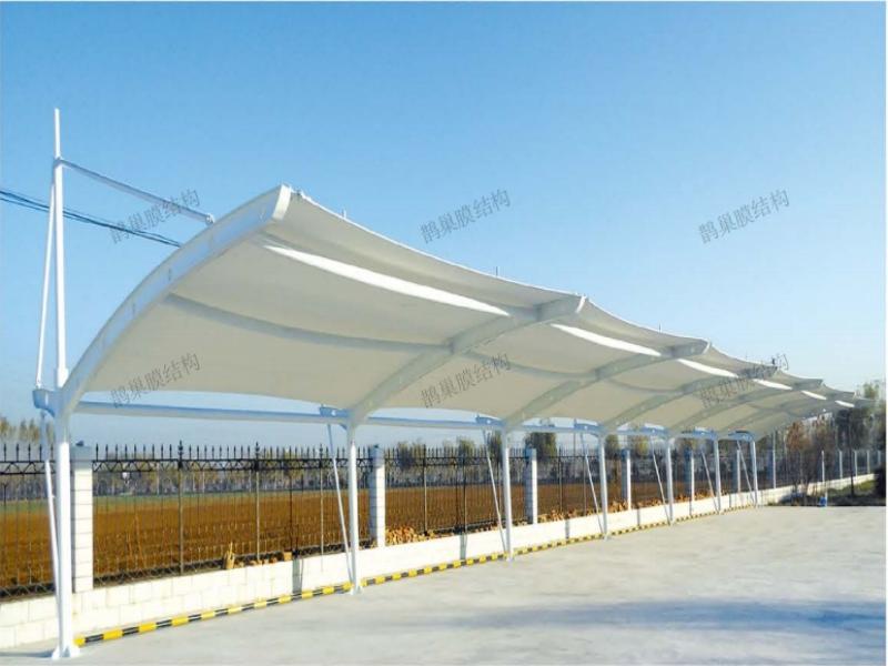钢膜结构停车棚是一种新型的建筑,一般都是用于体育馆、工厂、学校、社区地方。膜结构停车棚的特点就在于其耐用、耐温、透光性能好等;膜结构停车棚作为时代的产物,在外形上不仅是要美丽大方的,而且这种材料具有实际的功效,透光避雨、防止暴晒汽车变黄的情况。